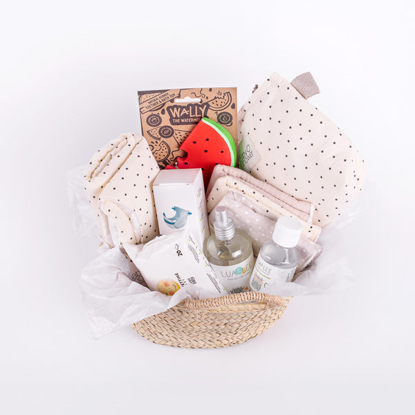Todas ellas contienen tres tipos de productos indispensables para el recién nacido: textil orgánico, cosmética natural y juguetes sostenibles. Recuerda que puedes además personalizar la canastilla con el nombre del bebé recién nacido.