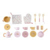 Horneen un pastel en el horno o cocinen verduras en los fuegos, que produce un sonido burbujeante al colocar una sartén sobre ella. Lávense las manos en el fregadero y guarden la compra en la alacena. El microondas tiene botones reales con ilustraciones, y con el juego de sal y pimienta, podrán darle un toque especial a cada plato. La cortina de tela, el paño de cocina y la manopla de horno están decorados con el suave estampado de flores suaves.