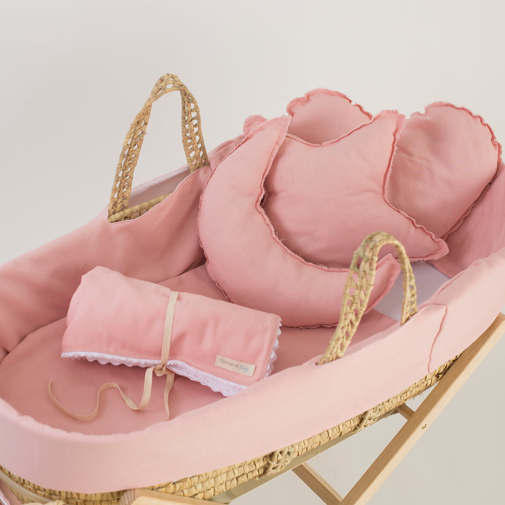 Suave cojín estrella lino rosa con el que lograrás un look completo para tu capazo. Te permite incorporar unos grados al bebe, utilizarlo de cojín anti vuelco y darle una sensación de contacto y mayor confort delimitándole el espacio. Su relleno es de 100 % poliéster. Además es hipoalergénico, antiestático y antibacteriano.