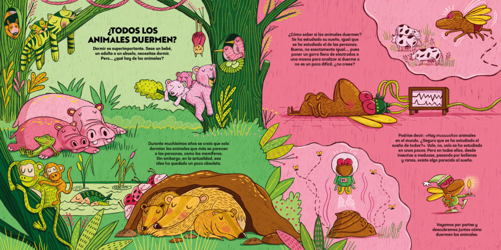¿Por qué dormimos? ¿Qué pasa en nuestras cabezas cuando lo hacemos? ¿Por qué no se caen los pájaros cuando se duermen cruzando el océano? ¿Cómo pueden dormir todo el invierno los osos sin morirse de hambre? ¿Puede dormir un animal sin párpados?