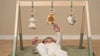 ¡Arriba esos bracitos! Este gimnasio para bebés está hecho de resistente madera e incluye tres peluches de diferentes texturas para tocar y sentir. A los bebés les encanta explorar estos lindos juguetes; la alegre oveja, una bonita gallina y una colorida flor. El gimnasio para bebés promueve la coordinación mano-ojo y estimula los sentidos. Juguete recomendado para bebés de 0 a 6 meses de edad.
