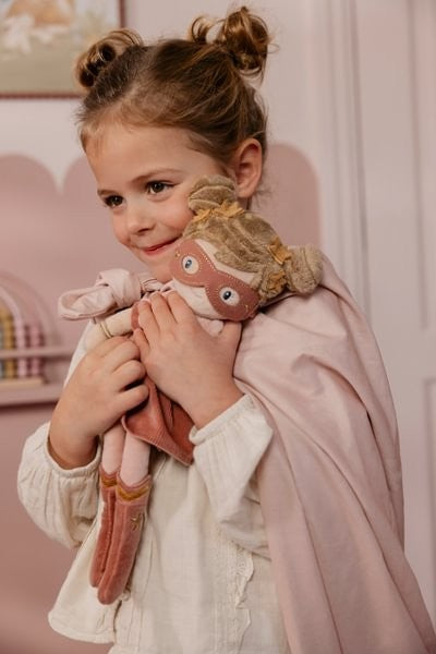 La muñeca de peluche Superheroína Rosa, es una suave amiga con botas geniales, una máscara brillante y una capa llena de detalles dorados. Su dulce carita y sus juguetones moños invitan a abrazos infinitos y juegos imaginativos. Perfecta para compartir aventuras y soñar juntas, todos los días.