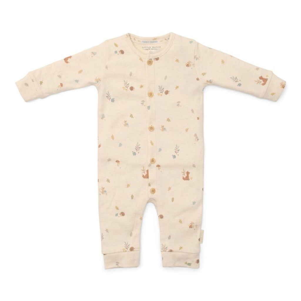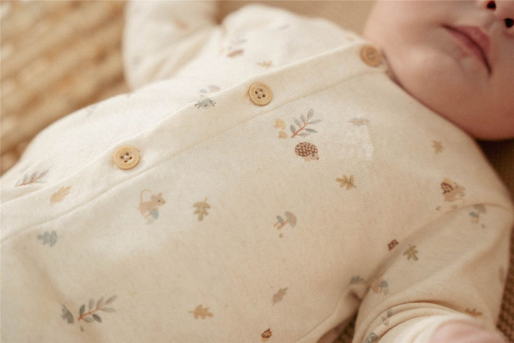 Mono, pelele o pijama para bebé abotonado en la parte delantera y en las piernas para facilitar el cambio de pañal con estampado de motivos del bosque.