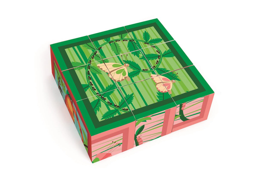 Gracias a este divertido rompecabezas de bloques, puedes componer 6 diferentes escenas de jungla. Los 9 bloques están impresos por sus 6 lados. El objetivo es la estimulación óptima de la habilidad motriz fina, la capacidad de reconocimiento de los colores y la creatividad. ¡Pero naturalmente los bloques también se pueden utilizar para construir divertidas torres!