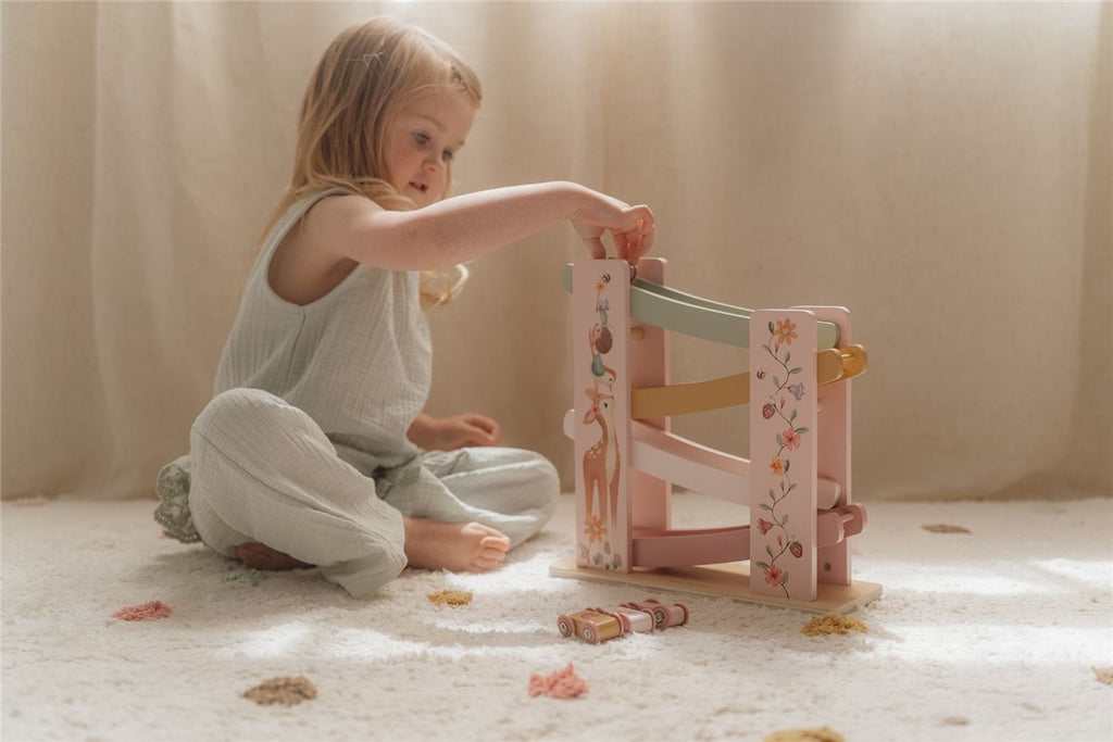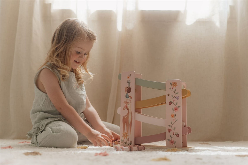 1, 2, 3 y ¡empieza! Con esta alegre rampa de carreras de madera que incluye 4 vehículos decorados, tu peque se lo pasará en grande. Coloca las piezas, cada una adornada con encantadores dibujos de criaturas del bosque, en la parte superior de la pista de carreras, déjalas ir y correrán hacia abajo. ¡A los niñ@s les encanta!