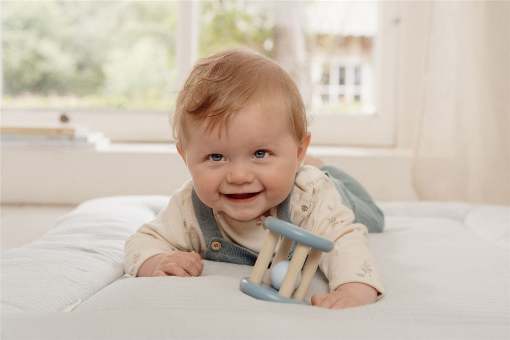 ¡Hazlo rodar y haz que el sonajero suene! Mantén este sonajero de madera rodando y el sonido de la campana seguirá y seguirá. Intenta agarrarlo y agítalo para obtener aún más sonidos de traqueteo.