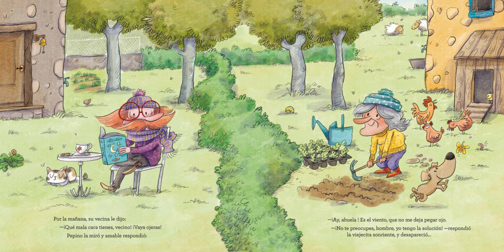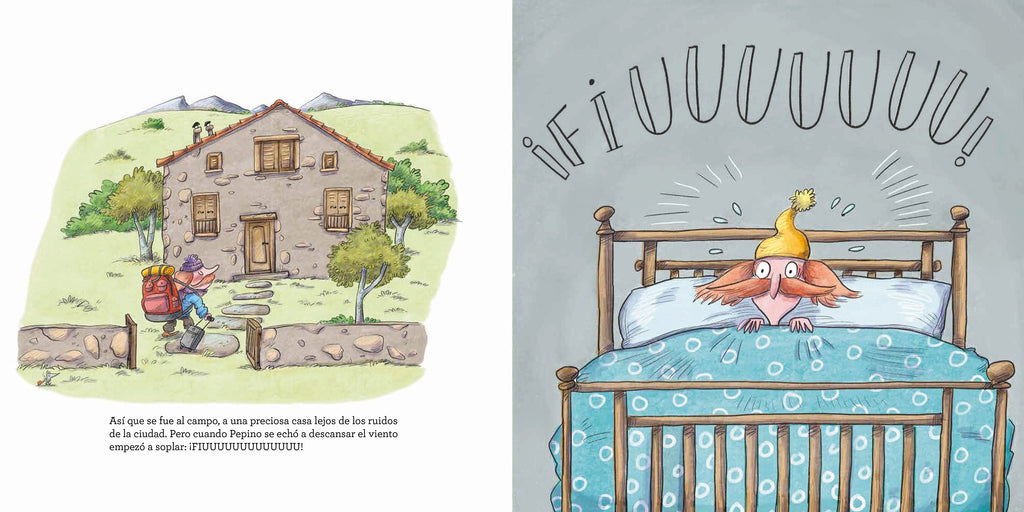 Pepino, el del oído fino, nunca puede dormir tranquilo. Se muda al campo buscando silencio para descansar, pero el ruidoso viento no deja de soplar.