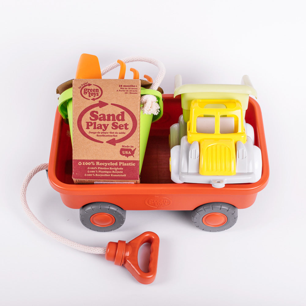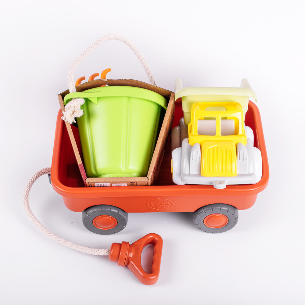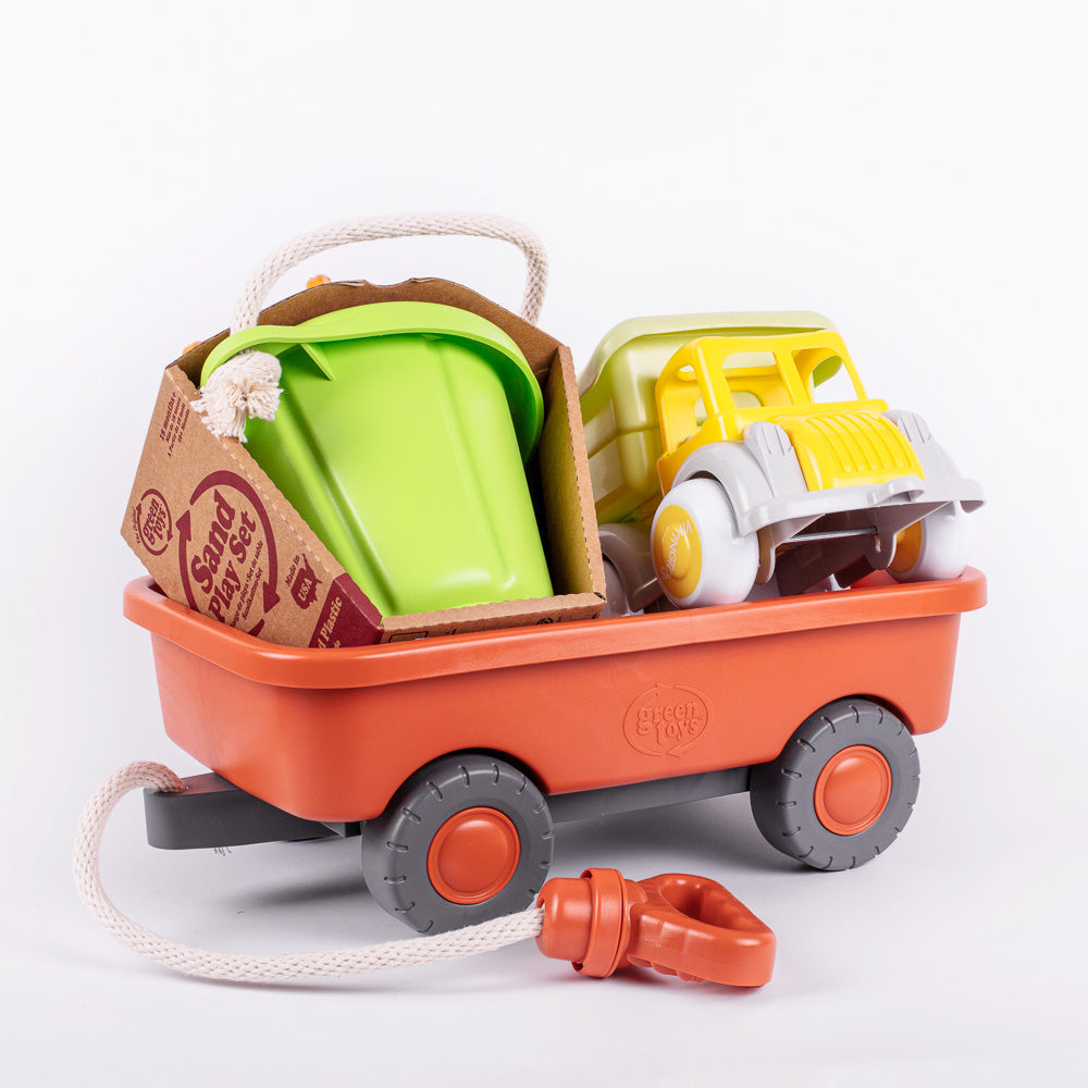 - Wagon robusto y resistente con mango y cuerda de algodón 100%. Con neumáticos gruesos y una bandeja fija, tiene el tamaño perfecto para que los más pequeños arrastren sus cosas más preciadas de un lugar a otro.